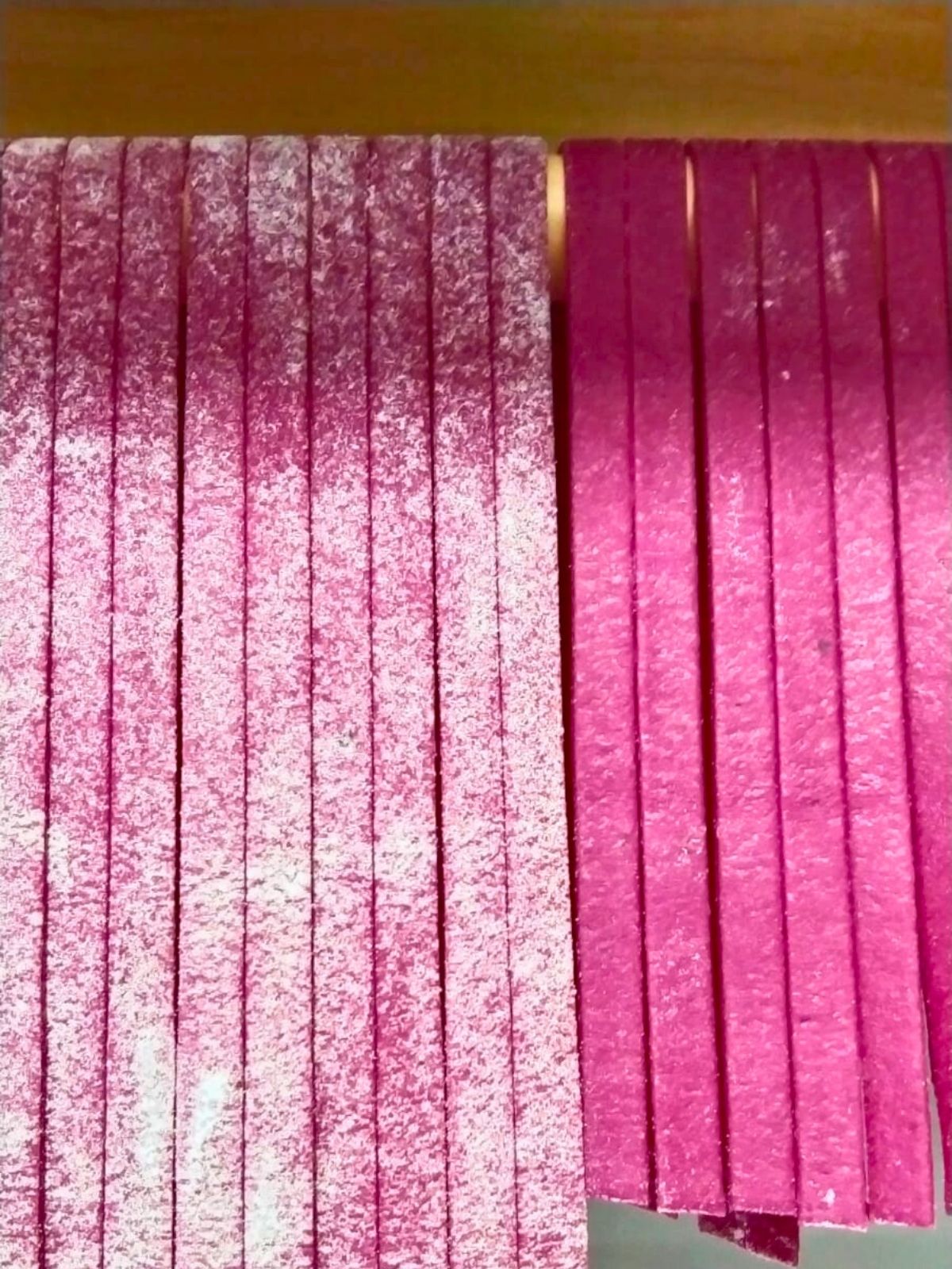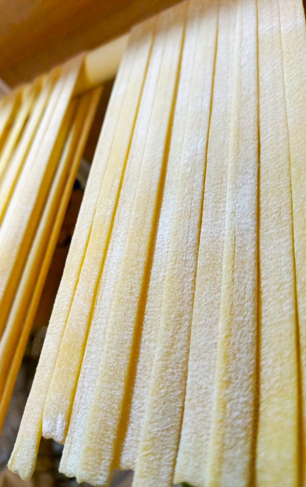 Pasta artesanal en forma de tira alargada. Mide 25cm de largo y de 5mm a 7mm de ancho con un grosor de 2mm.