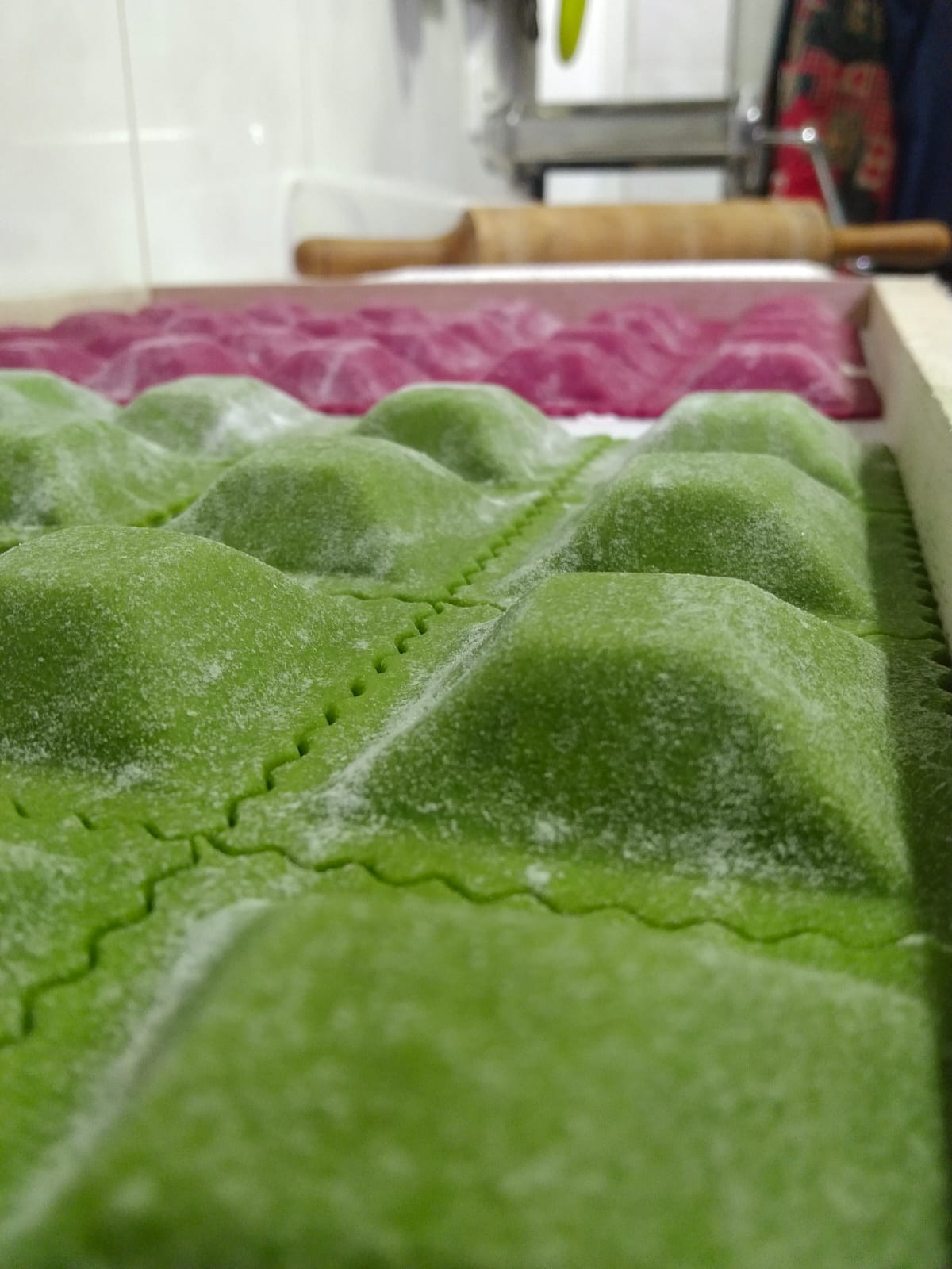Ravioles de pasta artesanal rellenos de tomates cherry secos especiados traidos del campo con queso mozzarella fresco y albahaca recién cortada. Perfectos si eres vegetariano. Puedes elegirlos en dos tipos de pasta.